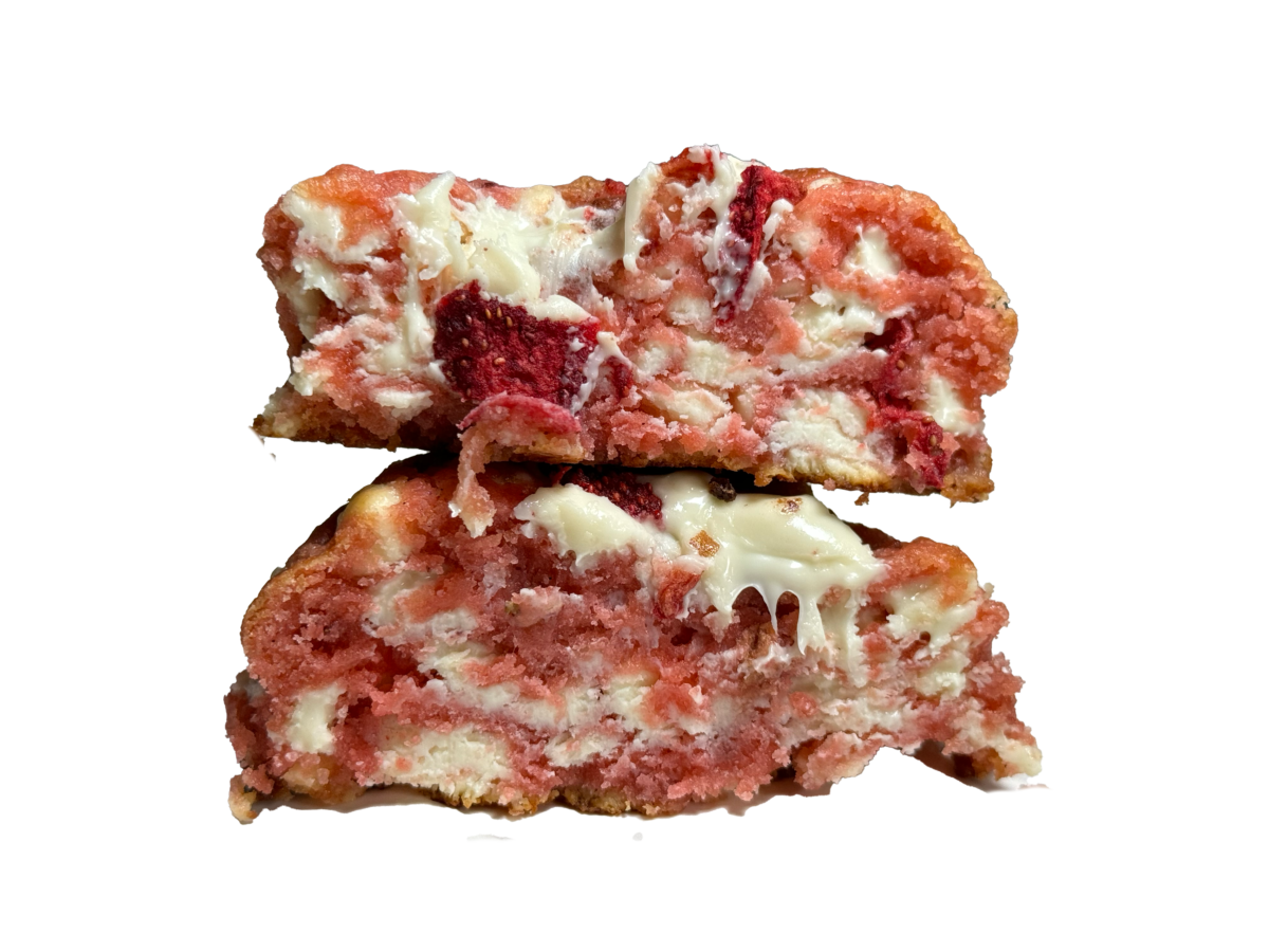 Strawberry cookie made with freeze-dried strawberries and white chocolate chips. Sweet, fruity, and kissed with just the right amount of magic.